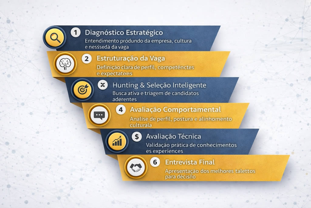 Assessoramos nossos clientes nos processos de recrutamento e seleção, desde o levantamento do perfil para o cargo, até a contratação do candidato ideal.